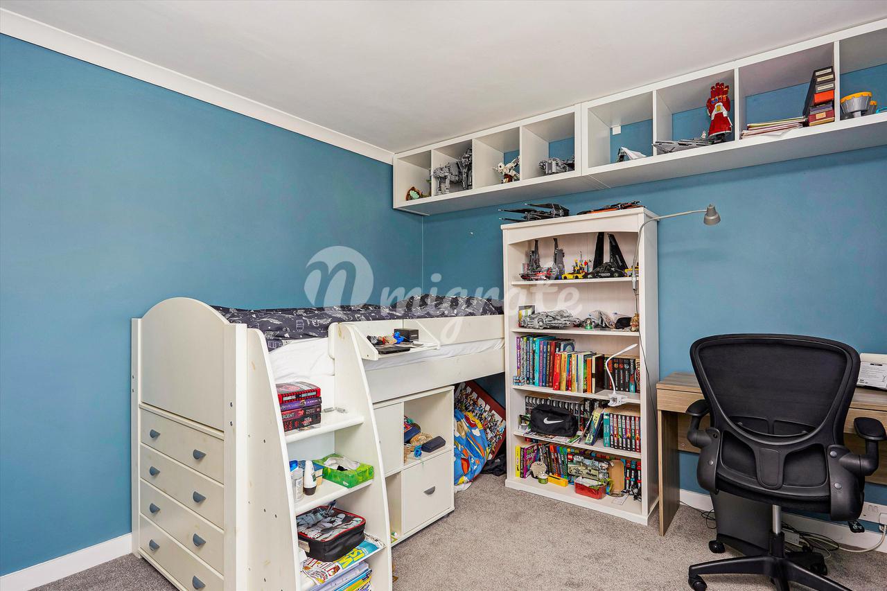 На втором этаже просторная лестничная площадка естественным образом освещается боковым окном и ведет к еще трем спальням и современной семейной ванной комнате. Главная спальня имеет большие размеры и имеет вид на заднюю часть с достаточным пространством для отдельно стоящей мебели. Две другие спальни на этом этаже также просторные и хорошо оборудованные, с большим количеством естественного света и достаточным пространством для хранения вещей.