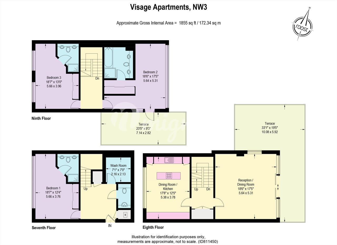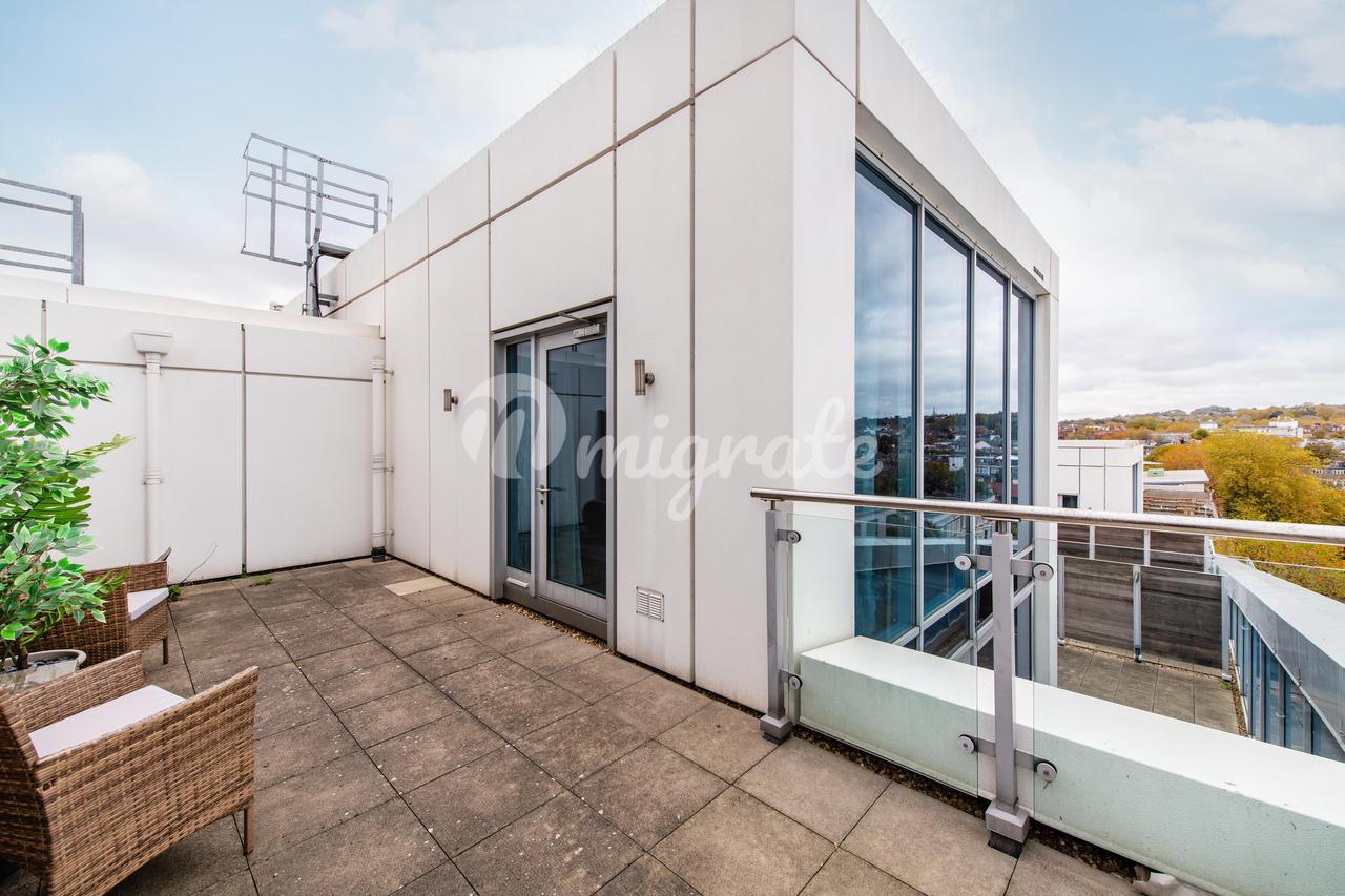 Прекрасная трехэтажная квартира-пентхаус с 3 спальнями, расположенная в современном здании с портьерами в Swiss Cottage.