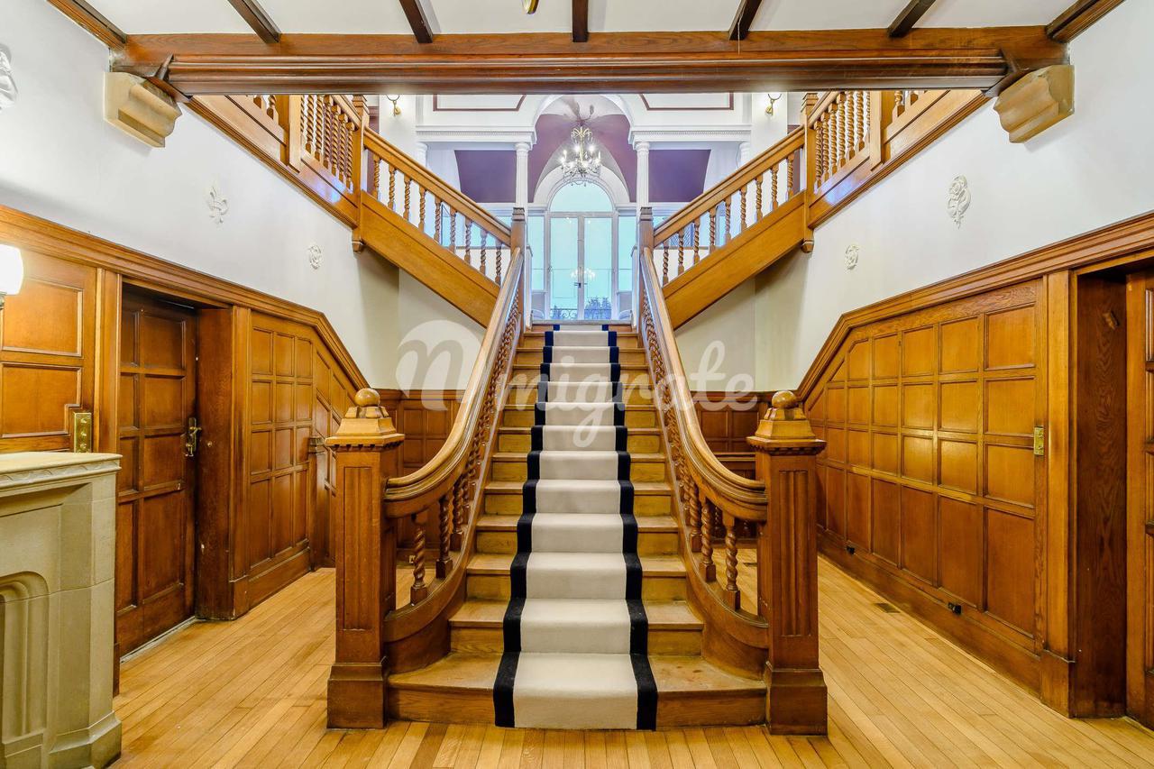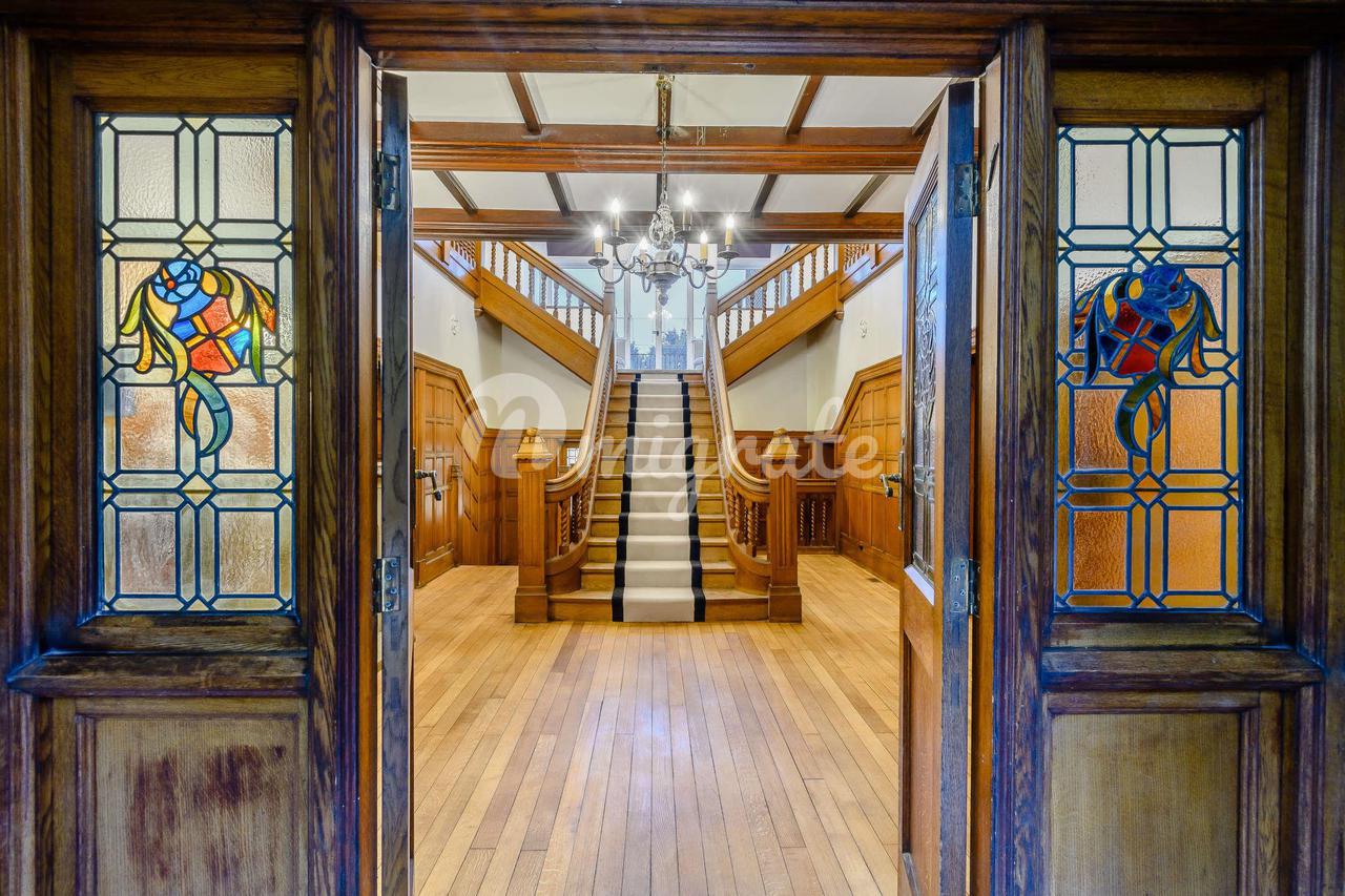 Отремонтированные нынешними владельцами по очень высоким стандартам, номера исключительно хорошо оборудованы. Эта элегантная прихожая имеет стены, обшитые дубовыми панелями, и впечатляющую центральную лестницу, которая ведет к разделенной полуплощадке, где большие окна, выходящие на юг, и застекленные двери позволяют естественному свету наполнять пространство. Сама посадка в галерее добавляет солидности красивой центральной зоне. Великолепная гостиная расположена рядом с приемным залом и имеет самый необычный и эффектный потолок, украшенный декоративной гипсовой лепниной, установленной вокруг центральной точки освещения. В передней части есть эркер, обеспечивающий достаточное количество естественного света, красивый узорный паркет из дуба и очаровательный камин с резным деревянным обрамлением и мраморной вставкой. Внушительный обеденный зал с замысловатой штукатуркой до потолка, обшитыми панелями стенами с тканевыми вставками с цветочным орнаментом, камином с отделкой из красного дерева и мраморной вставкой, оригинальным дубовым полом и широким эркером спереди. Второстепенная дверь из столовой ведет во внутренний холл, ведущий в кухню. Гостиная, хотя и меньше по размеру по сравнению с гостиной, обладает таким же характером. Штукатурка на стенах великолепна, а декоративный дубовый паркет добавляет тепла и интереса. Большое эркерное окно, выходящее на западный фасад, обеспечивает достаточное количество света, а чугунная каминная решетка с газовым камином с эффектом угля и мраморная окантовка вызывают дополнительный интерес. Кабинет находится рядом с внутренним залом, в который можно попасть из главного вестибюля или столовой. Это удивительно тихое, укромное место, которое идеально подходит для того, чтобы сбежать от суеты главного дома. Дверь на второстепенную лестницу ведет прямо на небольшую посадочную площадку, обеспечивающую доступ к пятой спальне и превосходным гостевым комнатам. Особого внимания заслуживает бильярдный зал своими внушительными пропорциями и изысканными деревянными панелями на стенах во всю высоту; эта превосходная комната является данью уважения прошлым годам джентльменских пространств для отдыха. Большой дубовый камин с резной окантовкой расположен между двумя окнами с витражами из свинцового стекла, добавляющими еще больше интереса. Существует также широкий эркер на запад, обеспечивающий большую зону отдыха. Великолепно оборудованная кухня/зал для завтрака оформлены в традиционном и в то же время современном стиле. Яркая синяя мебель божественна, а с бледными гранитными рабочими поверхностями над ней не кажется темной или внушительной. Есть хороший набор встроенной техники и превосходная духовка Rangemaster с 5 конфорками и традиционной вытяжкой. Зона для завтрака оснащена красивым сиденьем у окна, расположенным в большом эркере, откуда открывается великолепный вид на сады на заднем дворе и достаточное количество естественного света. Есть дверь в сторону собственности и доступ к туалету садовника. Из внутреннего зала лестница спускается в обширный подвал, который в настоящее время используется как хранилище. Дубовая лестница поднимается на полуплощадку с замечательной зоной отдыха с арками и колоннами. Французские двери с окном с обеих сторон обеспечивают доступ к ба