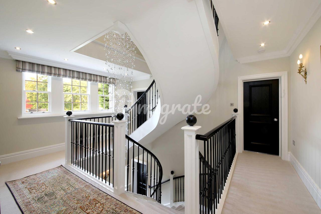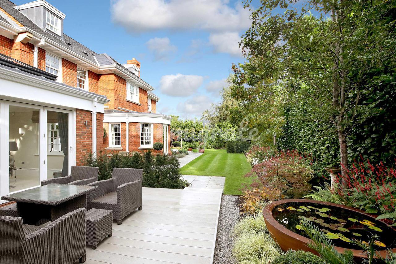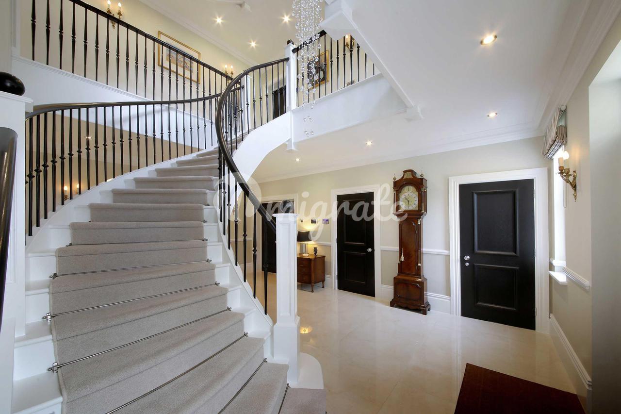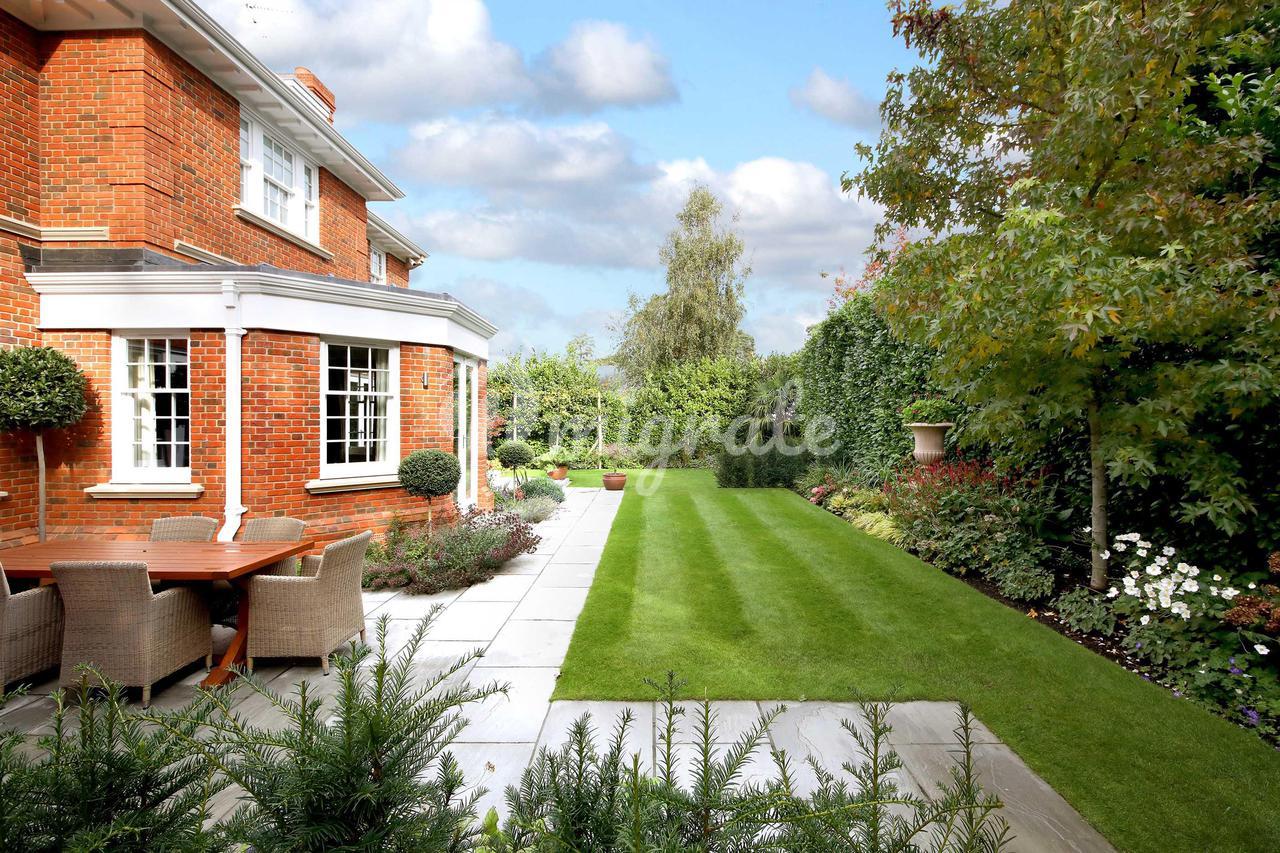 К дому подъезжаешь через кованые ворота с электроприводом и кирпичными столбами на вымощенную подъездную дорожку, ведущую к гранитной парковке и зарядной станции для электромобиля с гаражом на 2 машины. Сады и территория были профессионально благоустроены Фионой Харрисон и хорошо защищены множеством взрослых деревьев, живых изгородей, кустарников и растений.