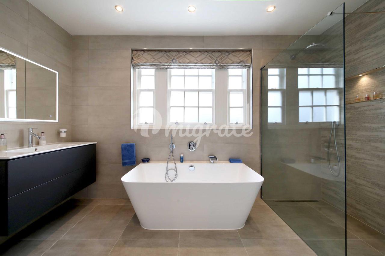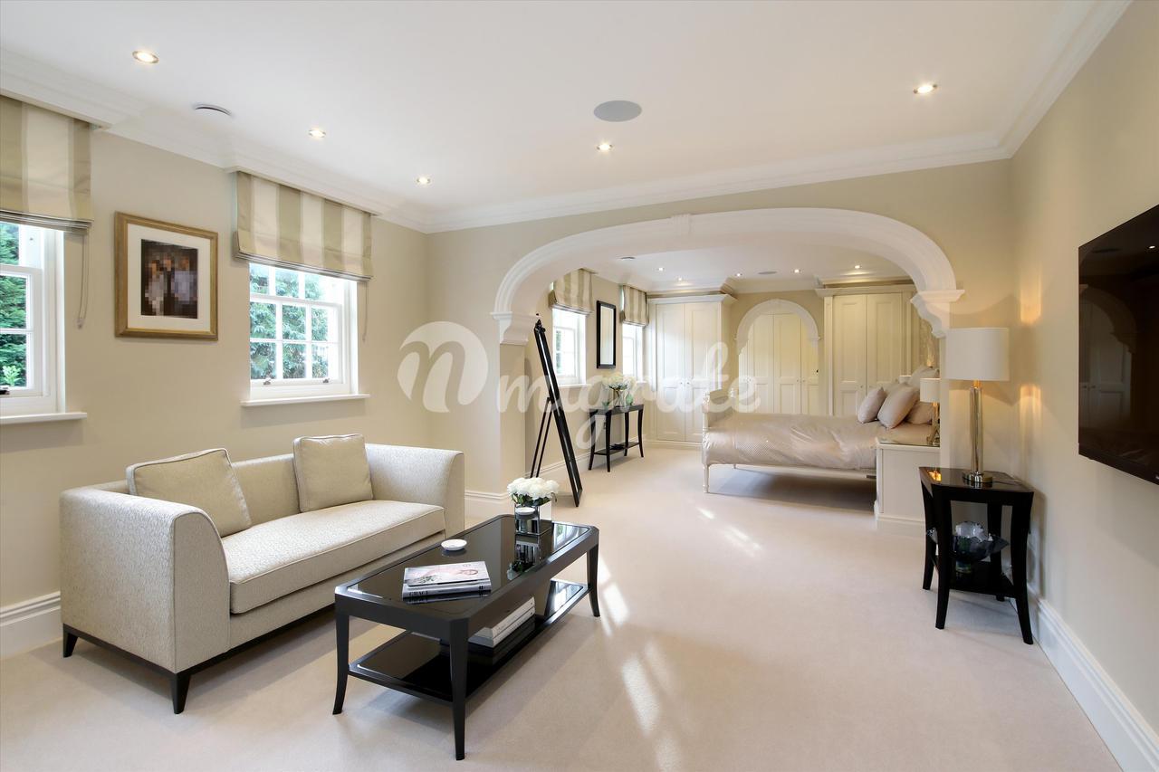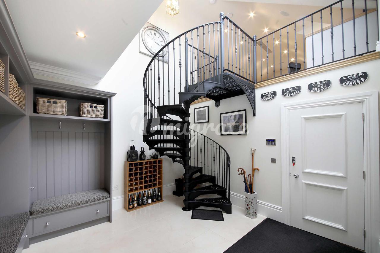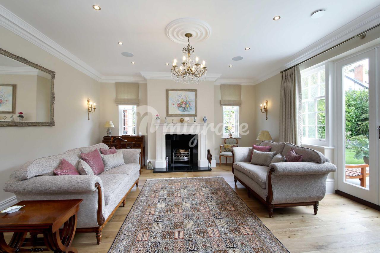 К дому подъезжаешь через кованые ворота с электроприводом и кирпичными столбами на вымощенную подъездную дорожку, ведущую к гранитной парковке и зарядной станции для электромобиля с гаражом на 2 машины. Сады и территория были профессионально благоустроены Фионой Харрисон и хорошо защищены множеством взрослых деревьев, живых изгородей, кустарников и растений.