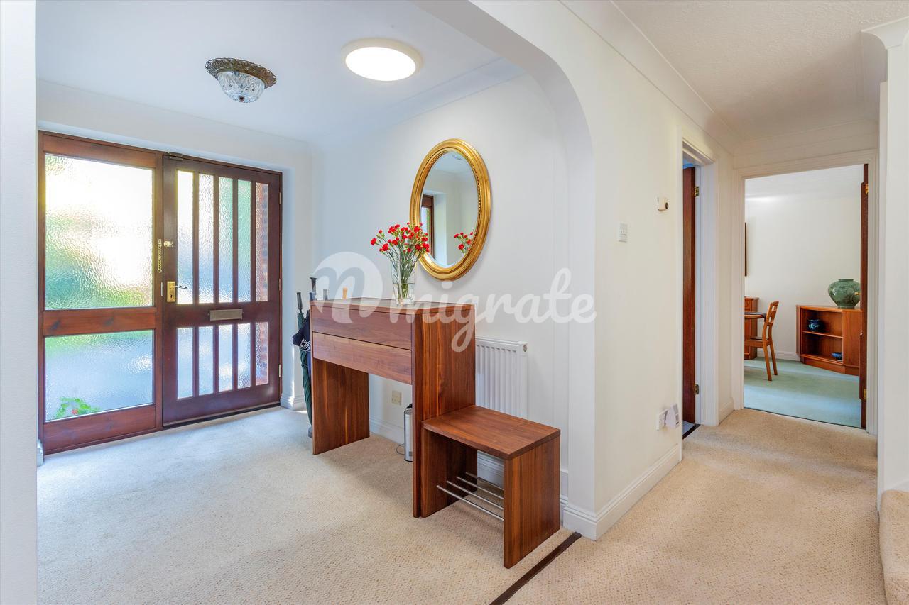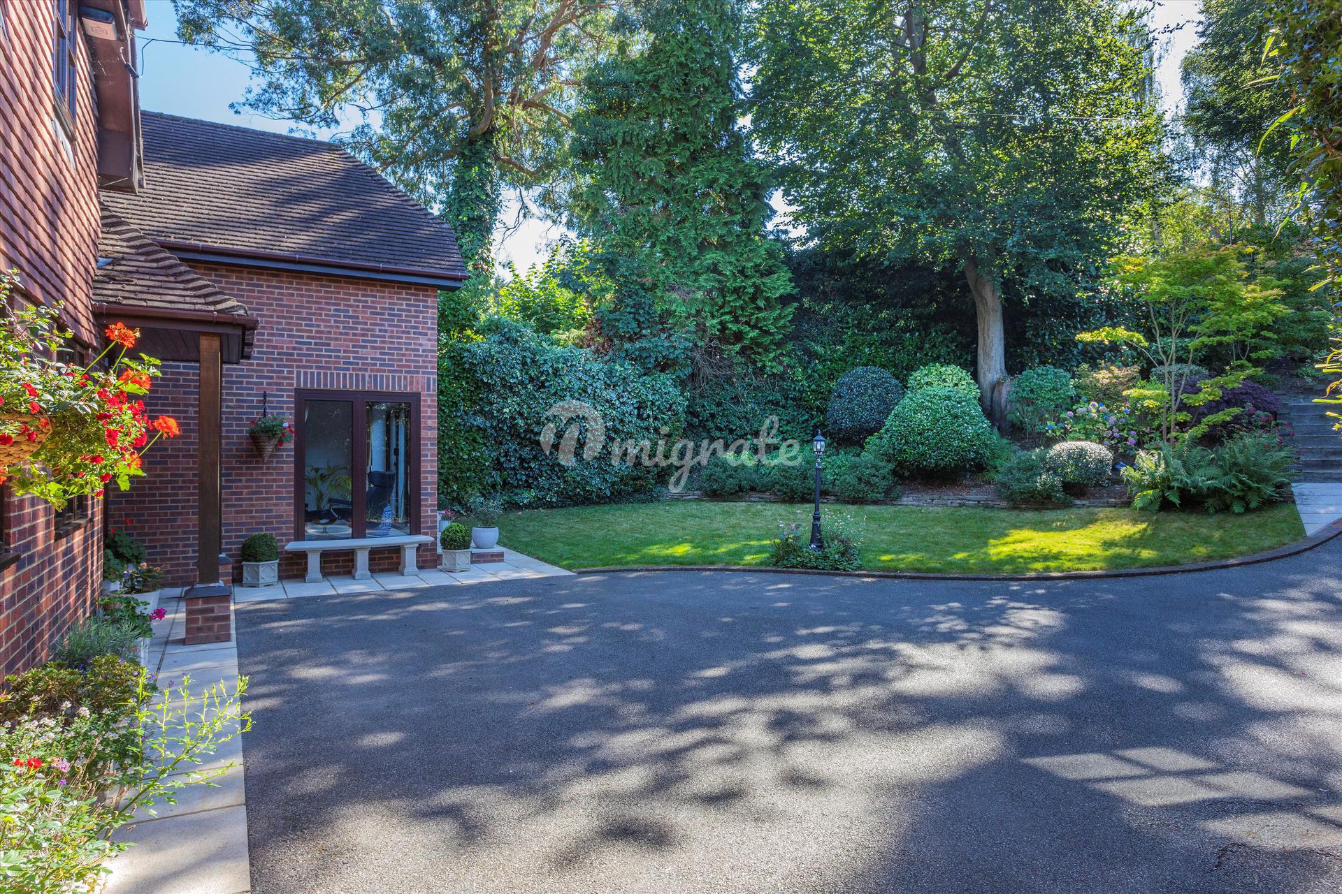Внешне собственность находится далеко от дороги и имеет исключительно уединенное и тихое место. На въезде в дом есть отдельный гараж, который вместе с благоустроенной дорожкой, вьющейся через сад, ведет вниз к дому. В целом, парковка на участке легко вмещает три и более транспортных средства. Сад перед домом хорошо засажен зрелыми деревьями, кустарниками и декоративными японскими кленами. В задней части дома есть просторная мощеная терраса со встроенными принадлежностями для барбекю, которая прекрасно подходит для отдыха на свежем воздухе. Сад в основном состоит из лужайки со зрелыми бордюрами и достаточным количеством экранов, что придает ему уединенность. Рядом с домом садовый сарай и дровяной склад.