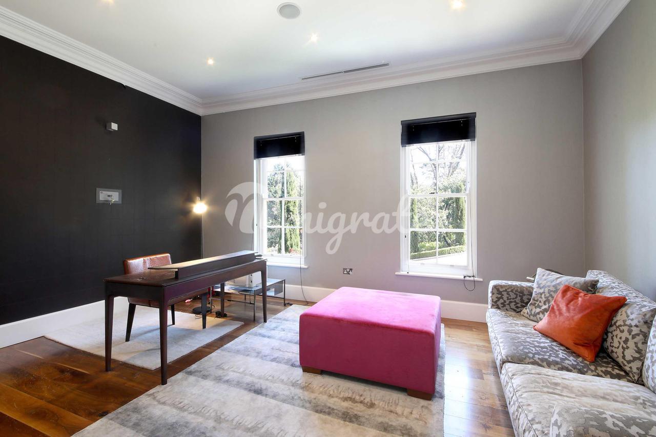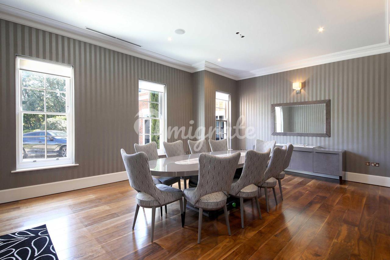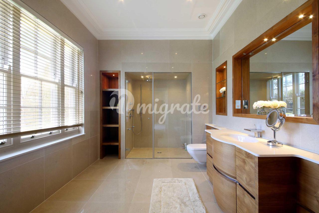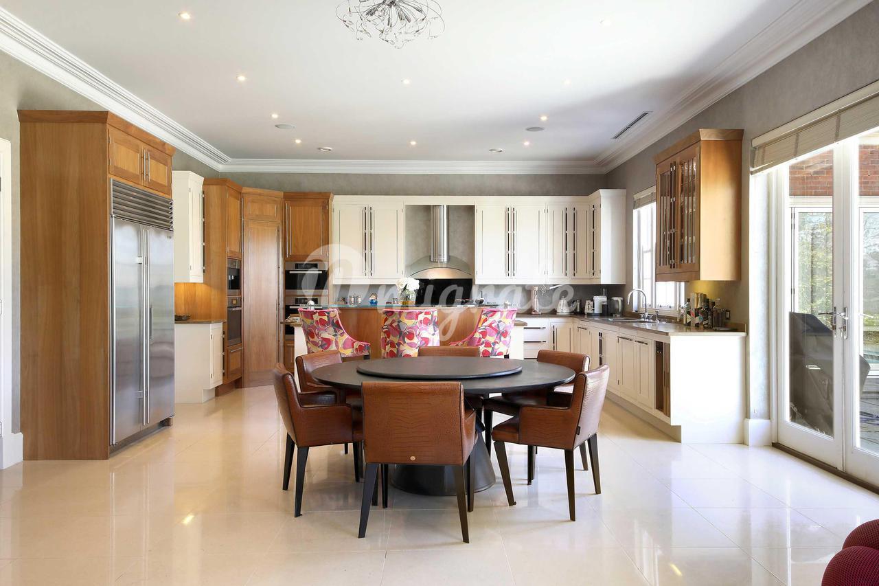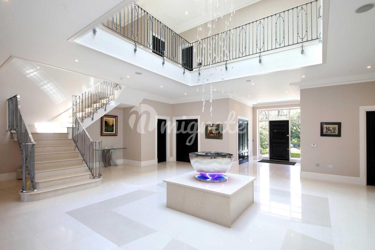 Подъезжая по поднимающейся подъездной дорожке через автоматические ворота, дом представляет собой внушительное заявление, предлагающее исключительное пространство внутри. Большой зал с галерейной площадкой наверху окружен различными комнатами для приемов, включая кабинет, гостиную, столовую, семейную кухню / комнату для завтрака, подсобное помещение, винный погреб и домашний кинотеатр. Существует также прямой доступ к развлекательному комплексу на уровне земли, включающему большой бассейн, тренажерный зал, сауну, паровую баню, спа-центр и раздевалки. На первом этаже находится просторный главный люкс с двумя ванными комнатами и гардеробными с видом на сад и поле для гольфа, а также еще 5 отличных спален, каждая со своими собственными ванными комнатами. Кроме того, второй этаж предлагает обширное дополнительное пространство с отличным потенциалом для дополнительных развлечений или игр.