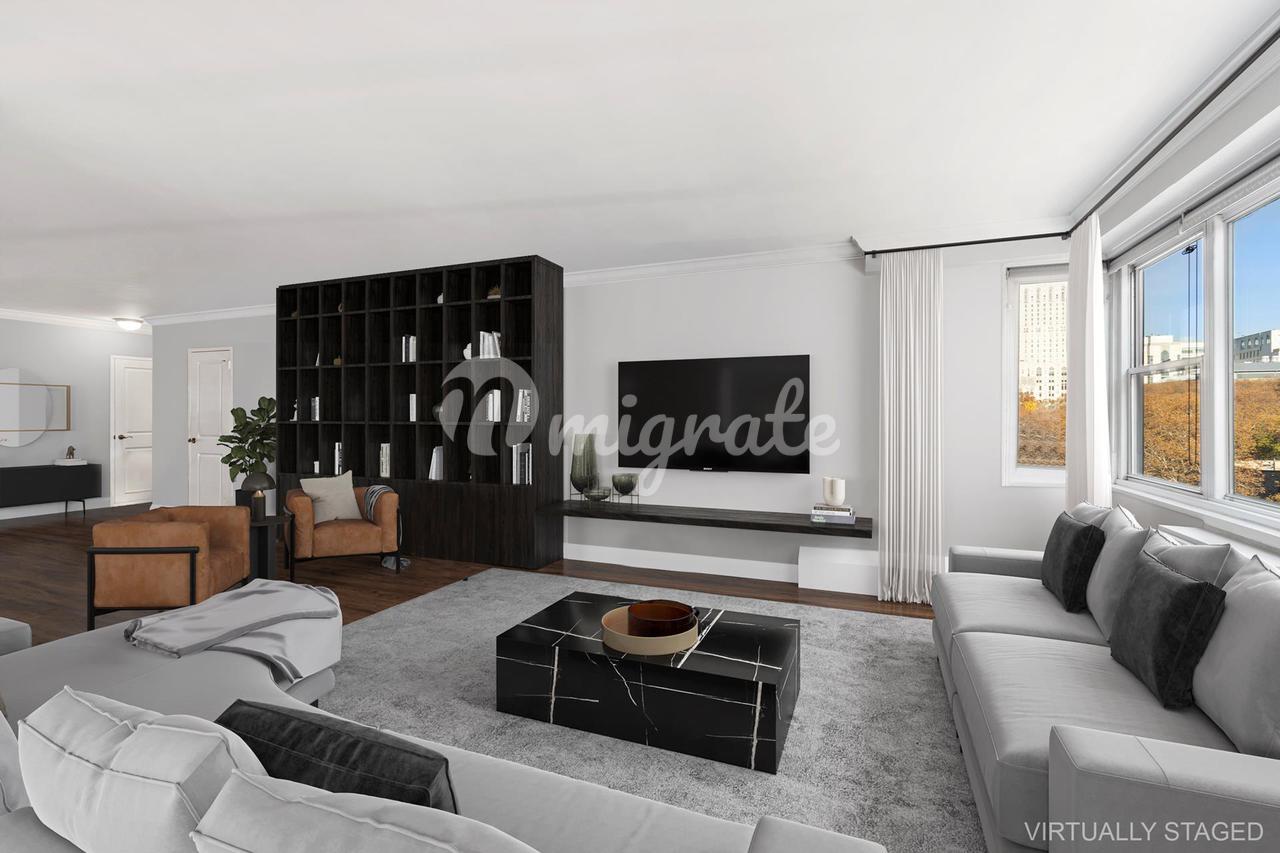 На противоположной стороне дома из гостиной, столовой и кабинета открываются непревзойденные северо-восточные и южные виды, обеспечивающие живописные рассветы и безмятежный вид на Ист-Ривер, а также пышную зелень парков Рокфеллеровского университета. Большие окна позволяют солнцу заливать пространство, делая этот дом очень светлым и просторным. Великолепная кухня с окнами предлагает просторные шкафы, кладовую и полную бытовую технику, включая посудомоечную машину и винный холодильник. Открытая кухня и столовая предлагают достаточно места для развлечений.