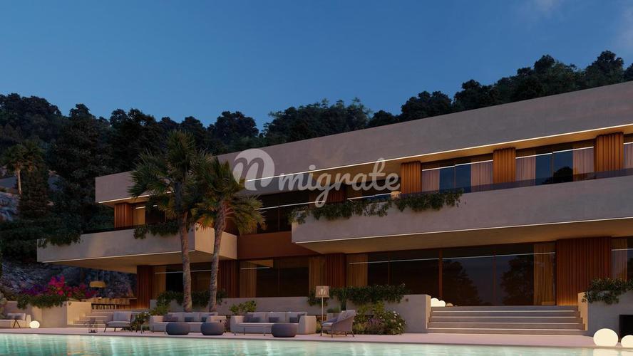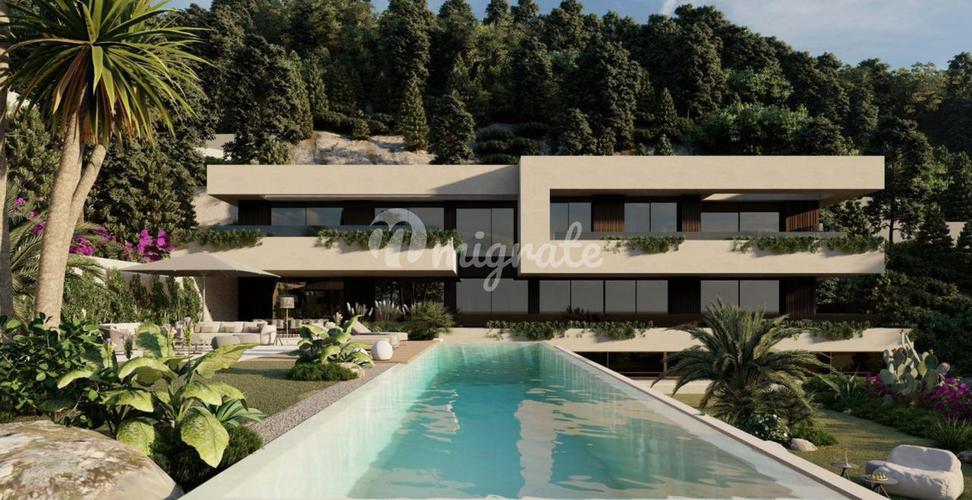 На этом участке площадью 2017 м2 есть предварительный проект виллы с жилой площадью 664 м2, плюс террасы площадью 379 м2 и бассейн площадью 78 м2. На первом этаже запланирована открытая кухня со столо