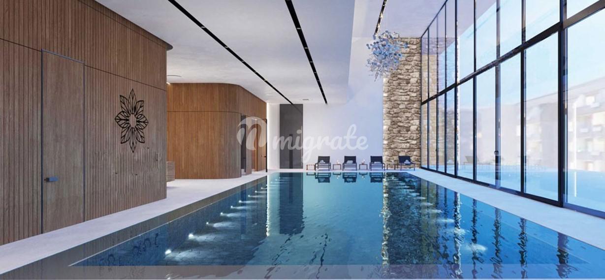 Внутренняя инфраструктура отдельного типа: отрытый бассейн, закрытый бассейн с подогревом, SPA, тренажерный зал, услуги консьержа, игровая комната, клубная раздевалка, подземная парковка, большие ландшафтные сады, игровая площадка для детей